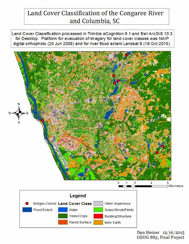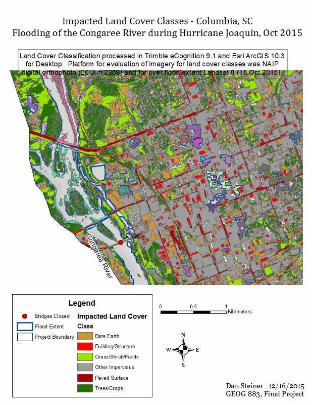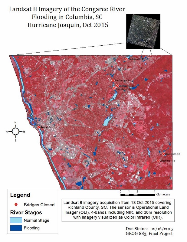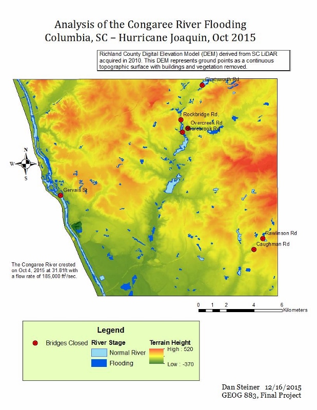 Emergency Management PlanningComprehensive mapping & GIS resources for disaster mitigation, response, and recovery. Flooding Analysis: Impacted Land CoverFlooding of the Congaree River during H. Joaquin (Columbia, SC in Oct 2015). Flooding Analysis: Terrain AnalysisFlooding of the Congaree River during H. Joaquin (Columbia, SC in Oct 2015). Flooding Analysis: Land CoverFlooding of the Congaree River during H. Joaquin (Columbia, SC in Oct 2015). Flooding Analysis: NAIP ImageryFlooding of the Congaree River during H. Joaquin (Columbia, SC in Oct 2015). Flooding Analysis: Landsat ImageryFlooding of the Congaree River during H. Joaquin (Columbia, SC in Oct 2015). Convoy Route PlanningOptimizing Road and Rail transportation routes (Afghanistan). Unmanned Aircraft System (UAS) ProductsOrtho Photo following post-processing & ground registration (Huntsville, AL). Unmanned Aircraft System (UAS) ProductsDigital Elevation Model for gravel planning & operations (Huntsville, AL).